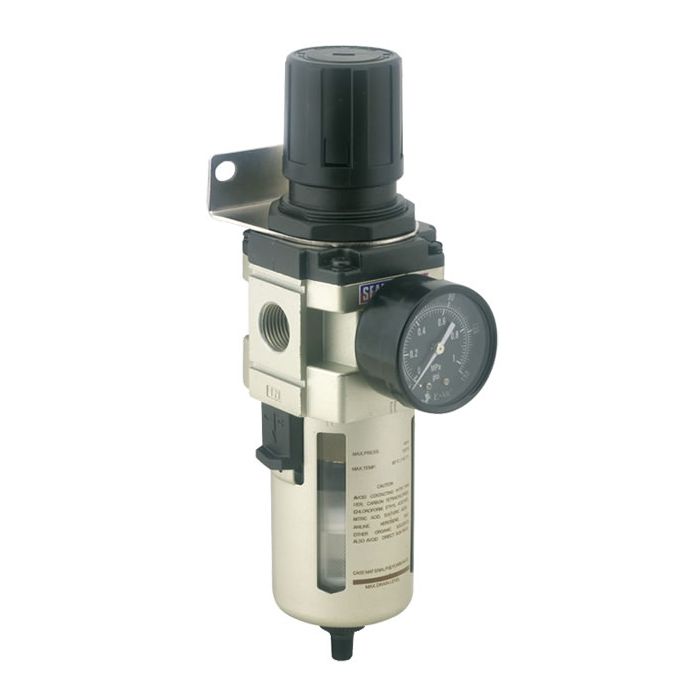 Compressed air systems can suffer from pressure drops, moisture, and contaminants that reduce tool performance and increase costs. This unit solves those issues with an automatic drain system that clears condensate without manual intervention, ensuring clean, dry air at all times. The locking control knob and large pressure gauge provide precise, stable air regulation for consistent tool operation.