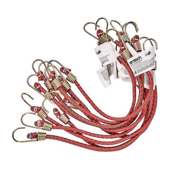 Set includes 10pc 10" (250mm) mini bungee cords with steel hooks