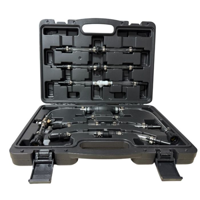 A comprehensive fuel priming set fitted with the latest male and female quick connectors.