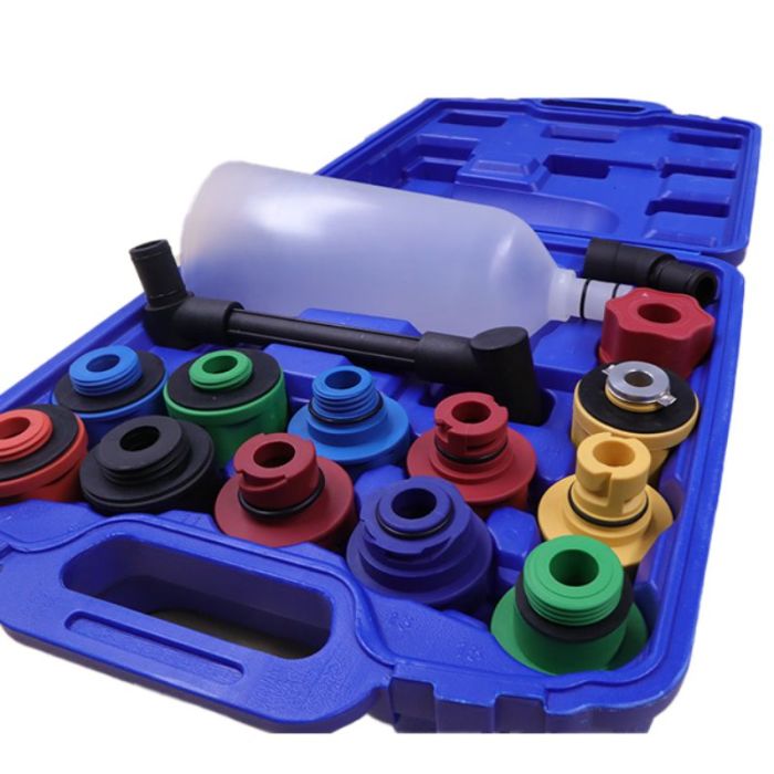 Colour-coded plastic oil cap adapters for use on Audi, BMW, Dodge, Honda, Mazda, Mercedes, Nissan, Subaru, Toyota, Volvo and VW