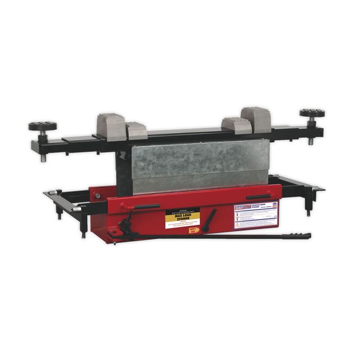 • This Jacking Beam has spring loaded flat arms with roller bearings - when there is no load they will take the weight of the Jacking beam, which ensures the beam will run smoothly along the pit or lift, but when loaded, they firmly stabilise the unit.