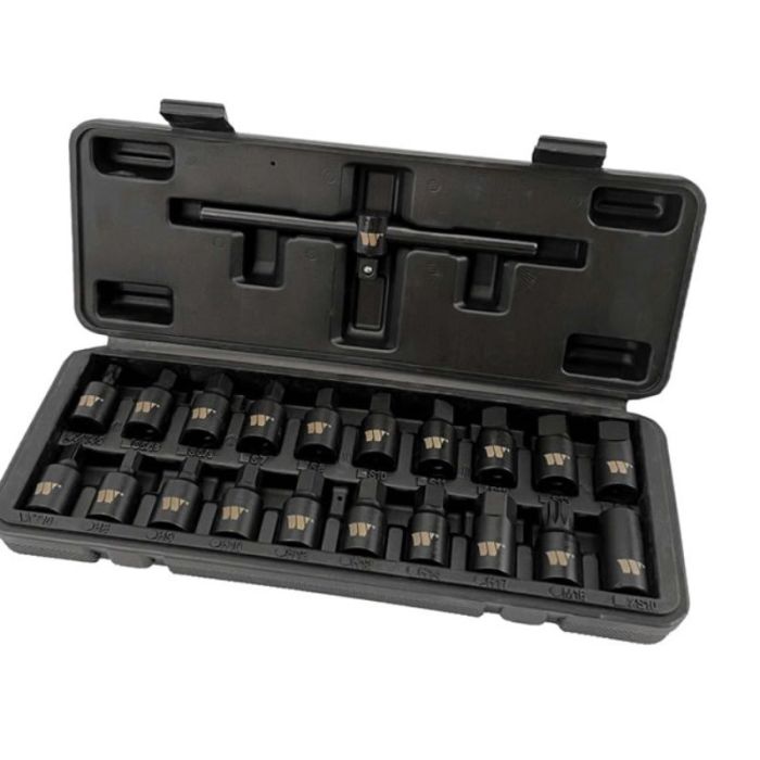 9 hexagon sockets: 8-9-10-12-14-17 mm, 5/16'', 3/8'', 1/2''.