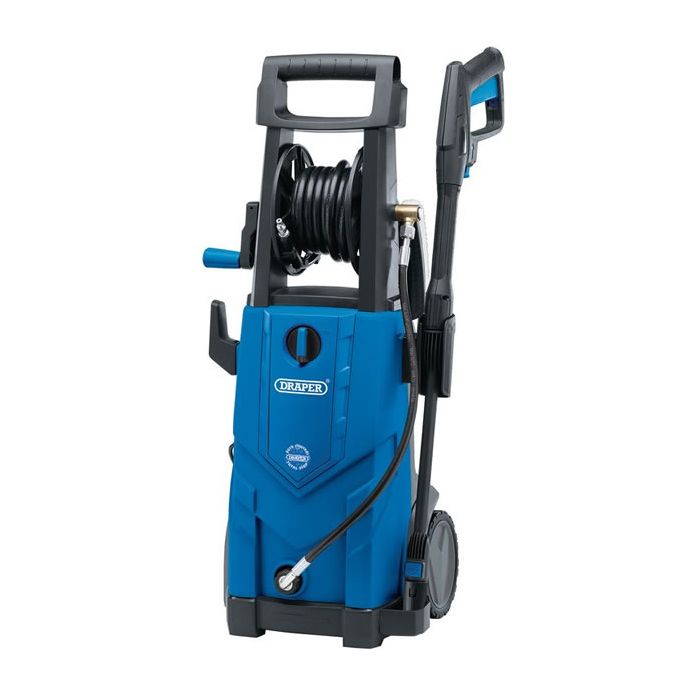 Perfect for cleaning patios, cars, caravans or worksites. This simple to use washer features a carry handle and large wheels, which make it easier to manoeuvre. The 6m high pressure hose is conveniently stored on an integrated reel with a winding handle, making this washer tidier and safer when not in use.