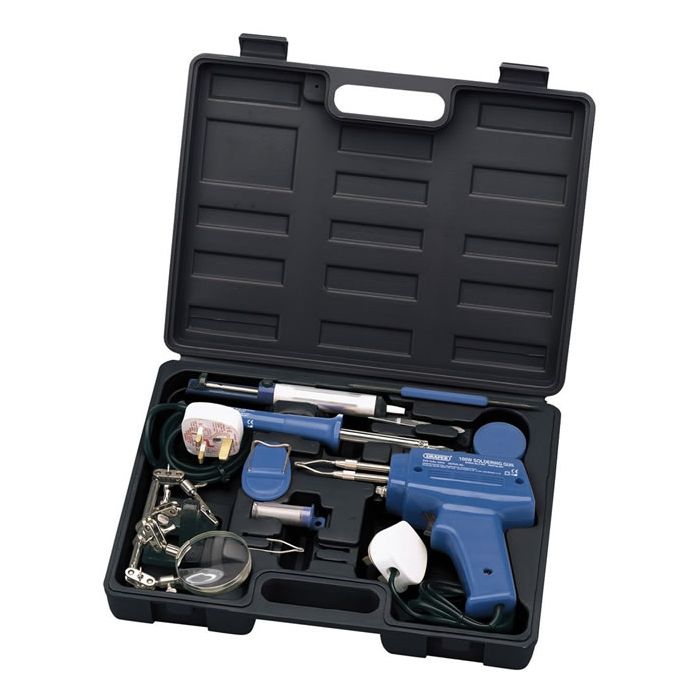 Kit with 30W soldering iron, 100W soldering gun both with 1.2m (approx.) cable and approved plug