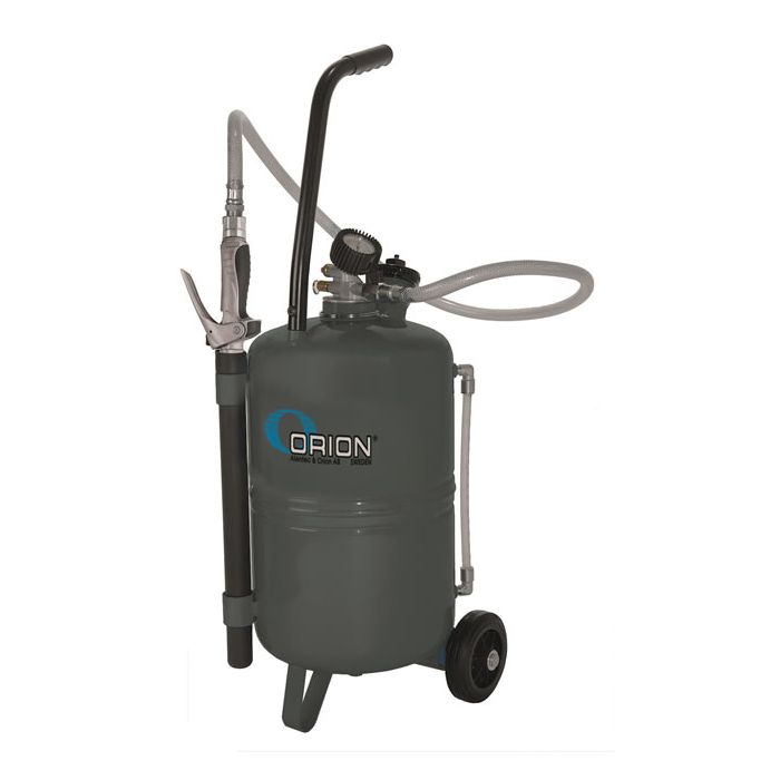 Air Operated Oil Dispenser. Pre-load the container with compressed air 0,3-0,7 MPa (3-7 bar), and the dispenser can be used without permanent connection to air pressure.