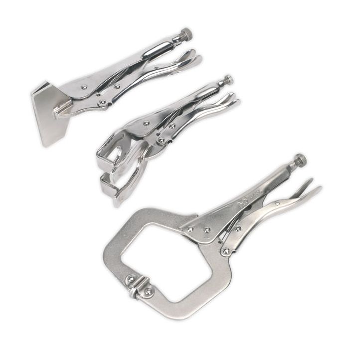 Contents: 248mm Sheet Metal Clamp, 225mm Welding Clamp, 280mm Locking C-Clamp