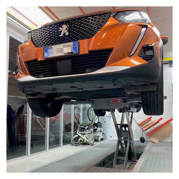 Scissor lift ideal for installation in both paint booth grids and preparation areas, and flush-mounted for traditional floors. Its ergonomic design allows you to easily reach the pickup points of the vehicles, eliminating all obstacles surrounding the vehicle, in this way making every operation on the chassis easier.