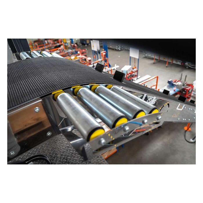 We can offer units manufactured to suit 4m - 10m applications with an optional 1m - 2m swan neck, it can move product up or down with the aid of the control systems on either end. The 500mm wide grippy rubber belt with flights handles most applications, however, bespoke belts and flights are available upon request.