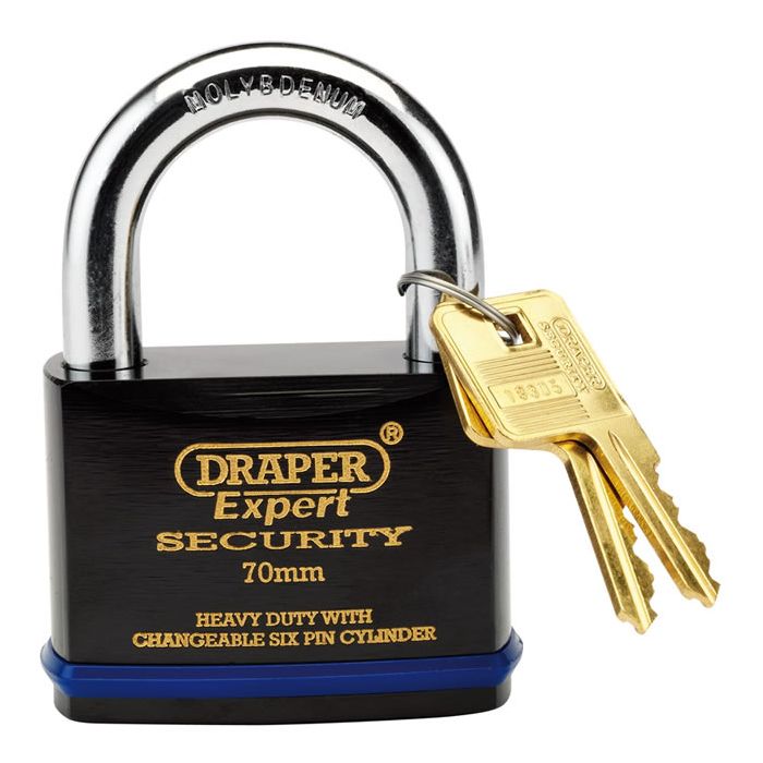 Expert Quality, solid steel body with quick change molybdenum steel shackle. Changeable six pin brass lock cylinder for servicing and rekeying. Dual stainless steel ball locking mechanism. Bumper to prevent damage to locked item. Supplied with two keys. Key blanks are available separately. Display packed.