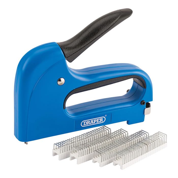 Specialist tacker for wires and cables. A lightweight, quick, one - handed alternative to cable clips. Ideal for fastening low voltage cables such as speaker, telephone, antenna or computer cables. For use with round cables 4 - 6mm or 6 - 8mm and flat wire 2.5 - 4mm width < 8mm or 4.5 - 6.3mm width< 10.3mm.
