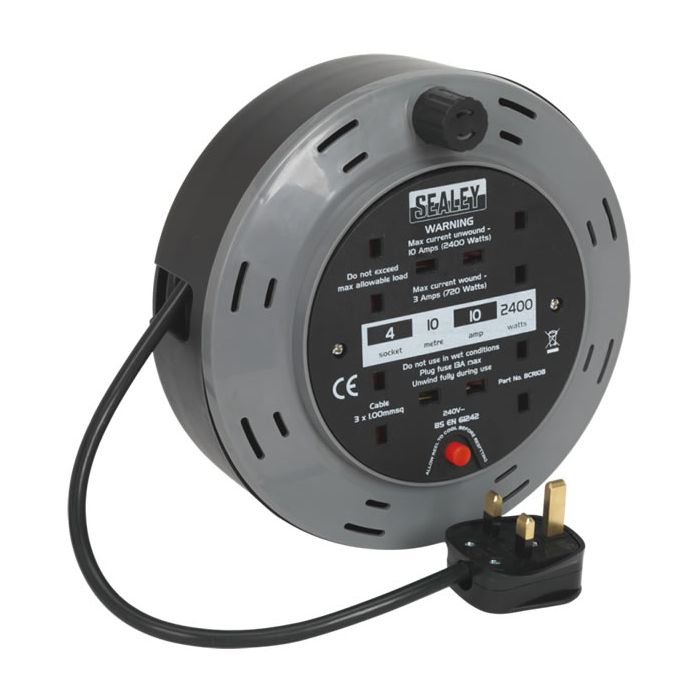 10m Cassette Type Cable Reel with Thermal Trip 4 x 230V