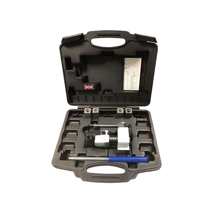 This UK manufactured tool can create both single and double brake pipe flares with minimum effort. Designed to be fixed in a bench vice for accurate and easy operation.