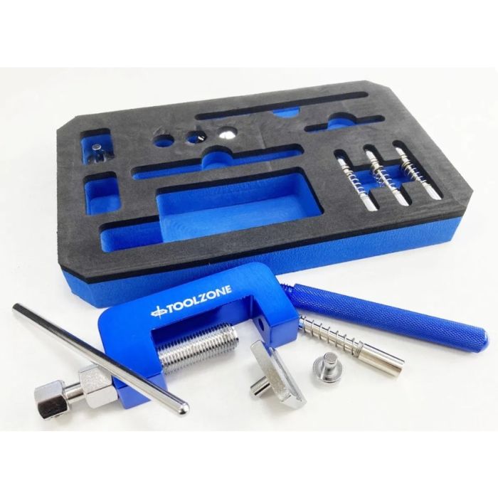 For Splitting & Repairing Motorcycle Drive Chains. Breaks & Rivets Drive Chain From 3 To 5Mm. Comes In Foam Insert To Safely Store In A Tool Cabinet.
