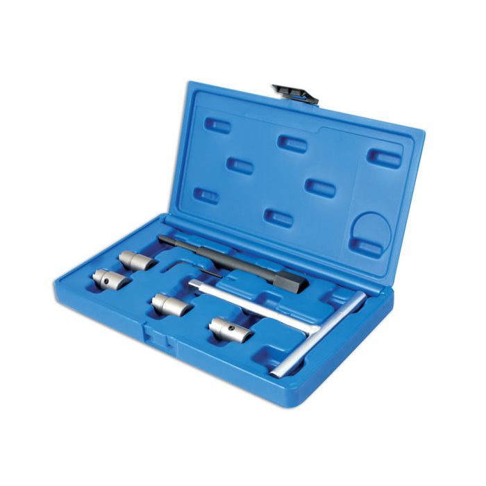 This new Diesel Injector Cutter Set for BMW, Mercedes, Citroen, Peugeot and Renault comes complete with Centring Pilot, T Handled Driver and four cutters in 19mm (Flat and angled) 17mm and 15mm. Blow mould storage case keeps the kit together