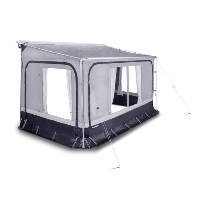 Are you the proud owner of a Dometic Revo Zip 350 roll-out awning? Then you can easily set up an extra room in front of your vehicle with the perfectly matching Dometic Revo Zip 350 Privacy Room. The side walls simply zip to the roof of your Revo Zip awning, while the front wall slides into the channel of the awning’s front wall. The premium quality Privacy Room provides comfort and protection with its strong 210D Weathershield polyester material and mesh panels behind side doors to let air in but keep insects out. Crystal clear windows mean you can enjoy the views and a more spacious feel inside the Privacy Room. Curtains, side doors and a mudwall are all included.