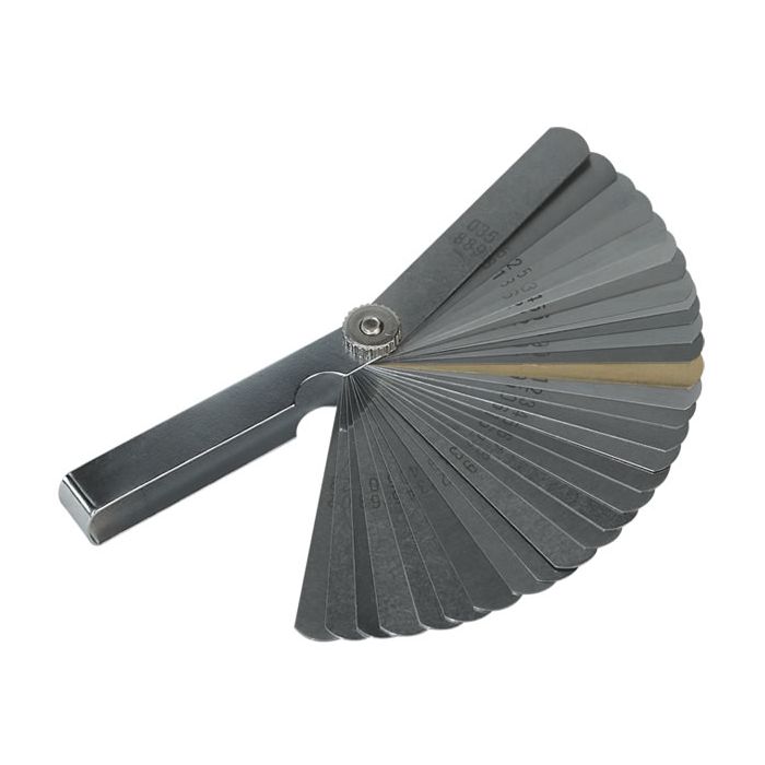 Imperial: 0.0015", 0.002", 0.0025", 0.003", 0.004", 0.005", 0.006", 0.007", 0.008", 0.009", 0.010", 0.011", 0.012", 0.013", 0.014", 0.015", 0.016", 0.017", 0.018", 0.019", 0.020", 0.021", 0.022", 0.023", 0.024", 0.025", 0.026", 0.028", 0.030", 0.032", 0.035" + 0.010" Brass