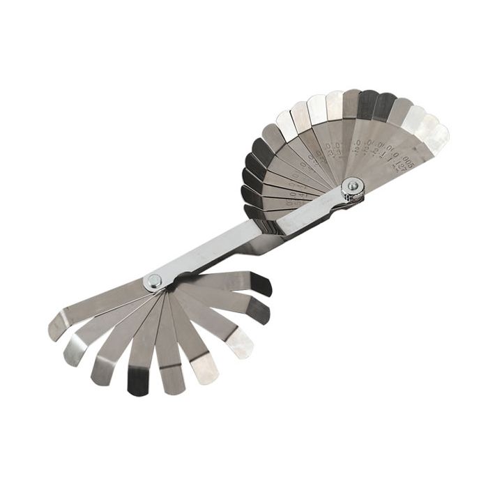 Imperial: 0.005", 0.006", 0.007", 0.008", 0.009", 0.010", 0.011", 0.012", 0.013", 0.014", 0.015", 0.016", 0.017", 0.018", 0.019", 0.020", 0.021", 0.022", 0.023", 0.024", 0.025", 0.026", 0.027", 0.028", 0.029", 0.030"