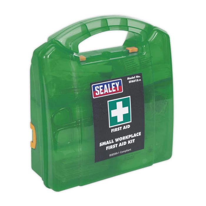 Contents: First Aid Leaflet, Sterile Assorted Washproof Plasters (x40), Non-Woven Triangular Bandages 900 x 900 x 1270mm (x2), Medium Sterile Dressings 120 x 120mm (x4), Large Sterile Dressing 180 x 180mm, Safety Pins (x6), Saline Cleansing Wipes (x20), Sterile Eye Pad Dressings (x2), Nitrile Disposable Gloves (6 Pairs), Adhesive Tape, Sterile Finger Dressings (x2), Resuscitation Face Shield, Foil Blanket, Burn Dressing, Conforming Bandage, Shears