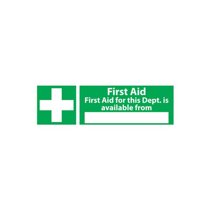 First Aid for this Dept. is available from...... Sign - 300mm x 100mm Self Adhesive Vinyl