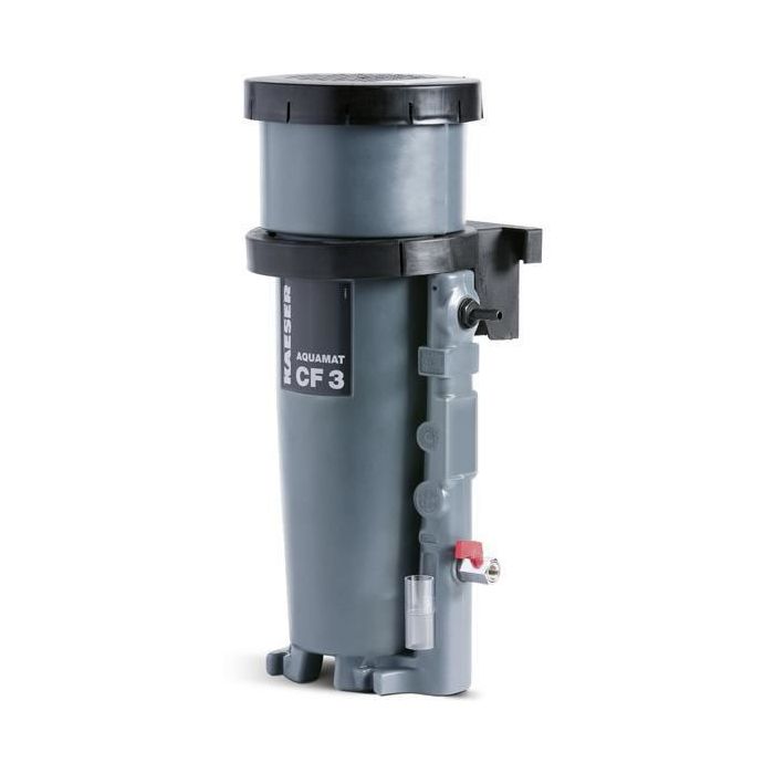 - System Design: The AQUAMAT CF3 consists of a pressure relief chamber for oil-containing condensate entry, a pre-separation tank for turbulence-free pressure release, and a removable particle catcher for capturing larger contaminant particles.