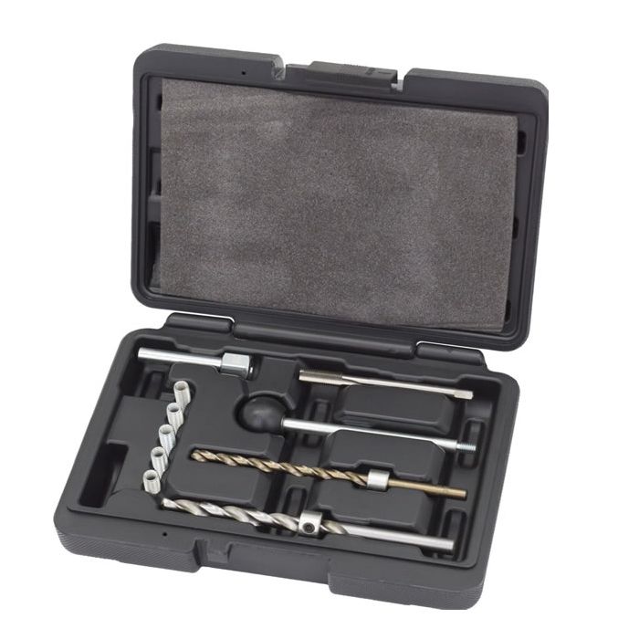 Injector Thread Repair kit provides the special tools required to drill out the broken bolt and fit M6 threaded inserts to allow new OEM M6 bolts to be used.