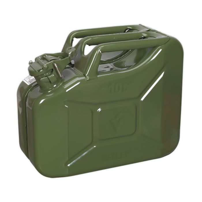 • Green jerry can with 10L capacity manufactured from 0.9mm pickled steel sheet with fuel resistant lining. • Includes unique wide channel breather for smoother pouring. • Leak-proof bayonet closure allows storage of the can in any position. • Lined inner tank to prevent rusting from petrol, diesel, oil, water or alcohol. • The bayonet is additionally secured with a locking pin to prevent accidental opening. • Manufactured and tested to comply with UN Dangerous Goods and DIN standards. • Colour-coded green for unleaded fuel.