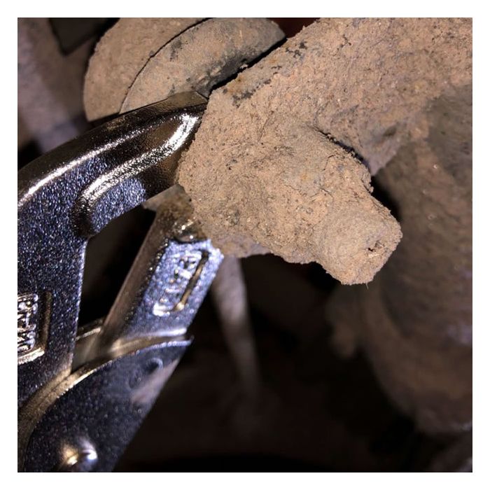 Robust jaws engineered to clamp on screws, especially on round ones.
