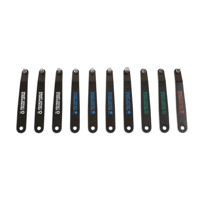 A set of low profile, offset tools in Star, Hex, Flat and PzDrive profiles. Ideal for restricted access.