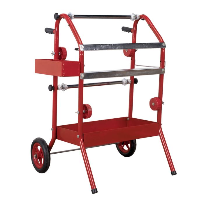 Two roll dispenser accepts rolls up to 450mm and features storage tray underneath dispenser unit. Automatically applies adhesive tape to edges of masking paper.