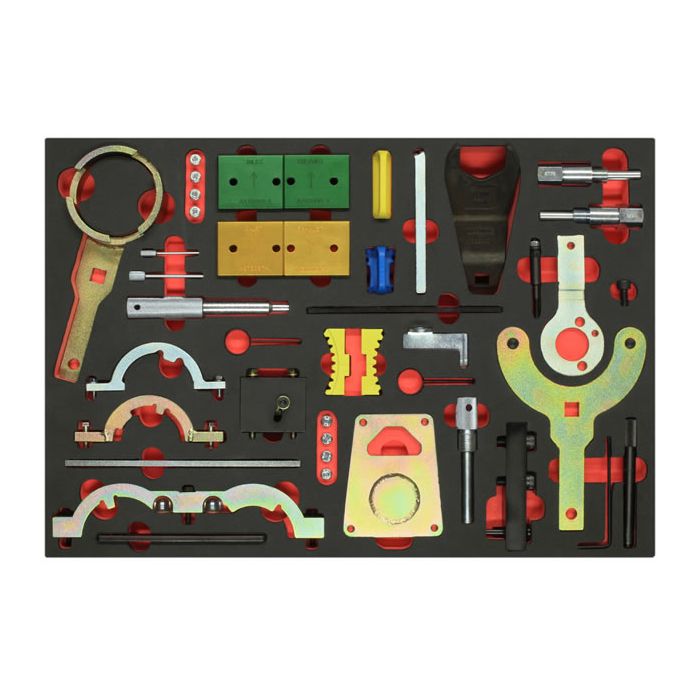 Supplied in a two colour, routed foam, the tool sets are designed to fit inside the drawers of most quality tool trolleys. The layout of the tools in the foam enables quick and easy identification of the tools and easily shows any missing item. The product is supplied with a CD detailing all of the model applications, engine codes, user instructions and OEM cross references. The set forms part of a New Modular System being developed by AST Tools.