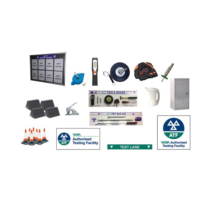 The MOT Ancillary Pack for Commercial ATF contains a complete set of mandatory tools and signage required to operate a VOSA-approved Class 5 Testing Station.