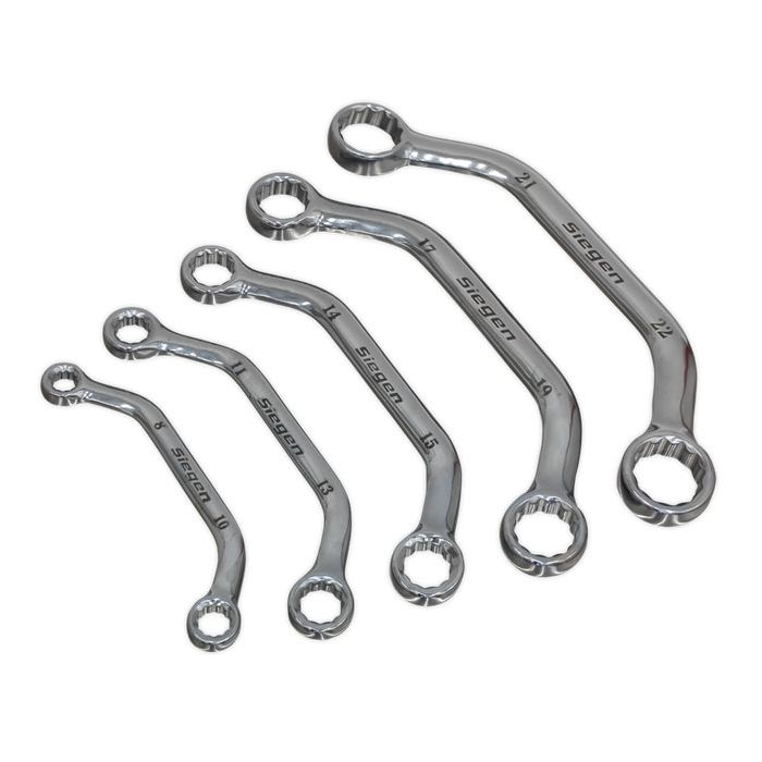 • Part of the Siegen by Sealey range of quality tools at competitive prices. • Chrome Vanadium steel obstruction spanners with bi-hex rings. • Heat treated and fully polished with mirror finish. • Sizes: 8 x 10, 11 x 13, 14 x 15, 17 x 19, 21 x 22mm. • Supplied in storage/carry rack. • Lifetime guarantee*.