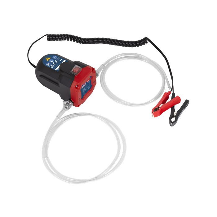 • LONG REACH - Supplied with a 1.2m suction hose, 2m discharge hose and a 1.7m battery cable with clips.