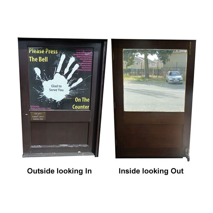 You can see outside but they can't see inside. Easy to apply window graphic is suitable for windows in your garage or on vehicles. One side of the material can be printed on and so get your message across in a professional way.