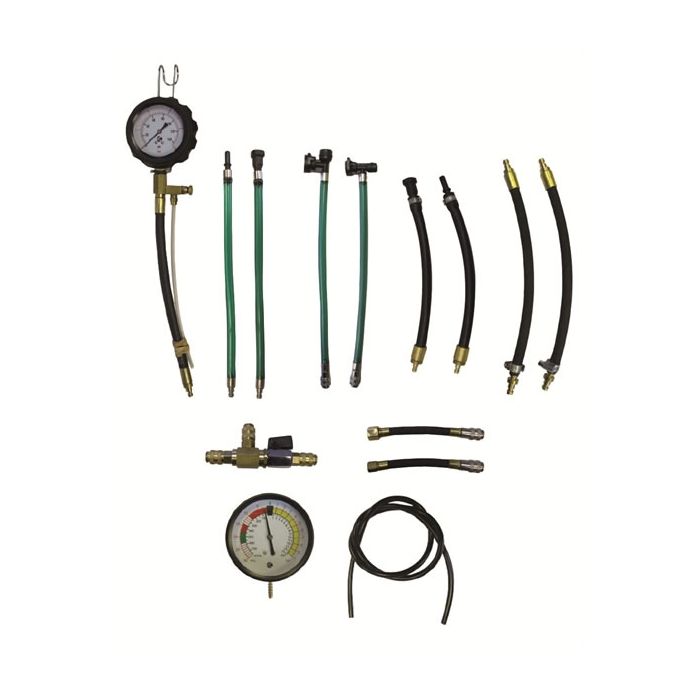 This kit combines the applications from both 31487500 - Multi-Point Petrol engine kit and 31461000 - CRD Low Pressure Test Gauge Kit.