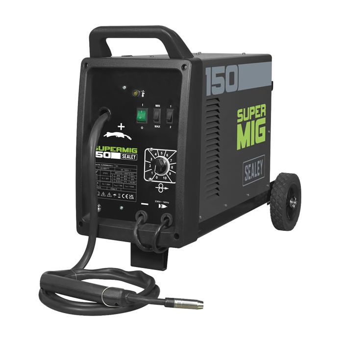 • Suitable for welding with CO2, Argon or CO2/Argon mix. • Uses a Forced Air Cooling System to slow transformer heating in order to increase duty cycle and a non-live torch to prevent the risk of accidentally striking an arc. • Supplied with an industrial Argon/CO2 regulator. • Illustrated with gas bottle to give an indication of size only; gas is not included. • A contract for the supply of gas should be arranged with your local gas distributor. • 3 Year Guarantee*. • Lifetime guarantee on Transformer*.