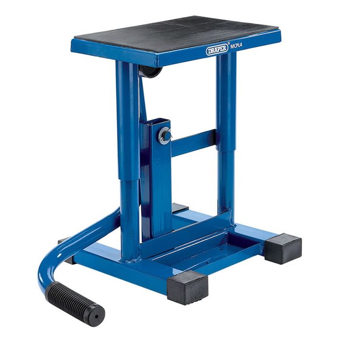 Quick lift off - road/trial bikes stand allowing the user to perform essential maintenance or services more easily. Simple foot lifting mechanism allows the bike to be swiftly raised. Rubber mat on the lifting platform prevents damage to underside of vehicle. Carton packed.