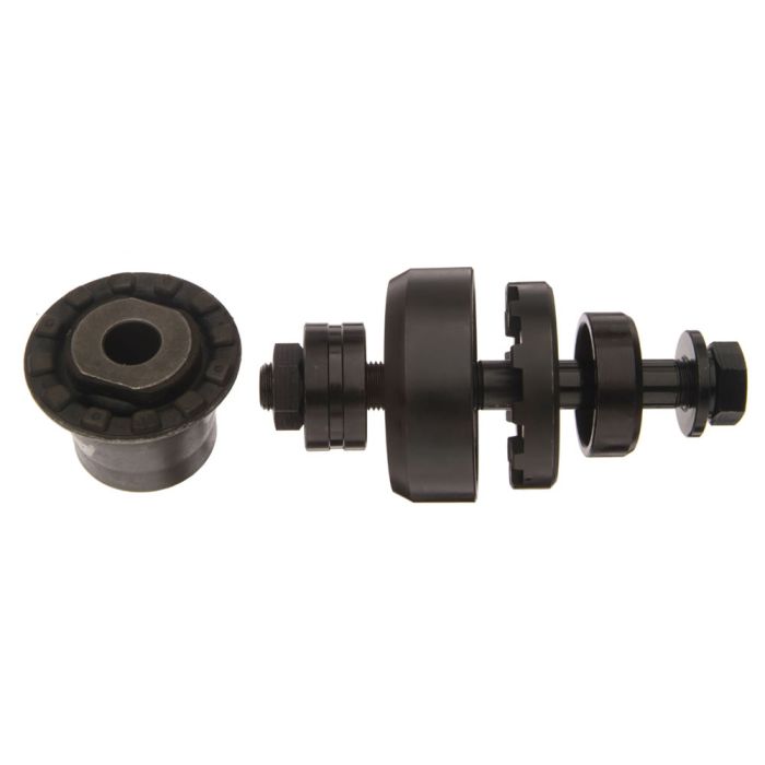 Fine pitch thread with thrust bearing enables the rear sub-frame bushes to be removed and inserted without removing the subframe from the vehicle.
