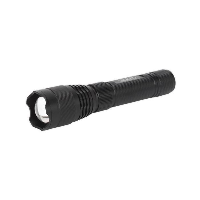 Single 10W CREE XPL LED produces extremely bright, white light with an output of 720 lumens and gives a working range up to 200 metres. • Focus type can be changed from spotlight to wide area by a twist action of the head. • Lightweight aluminium housing. • Two function on/off push-button for full and 30% energy saving mode. • Powered by a rechargeable 3.7V 2Ah Lithium-ion battery. • Supplied with micro USB charging lead.
