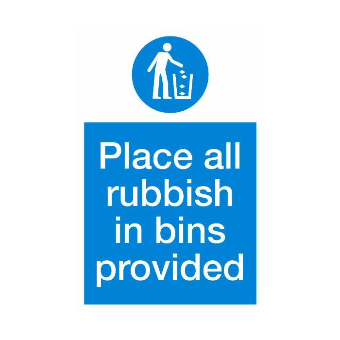 Place all rubbish in bins provided Sign