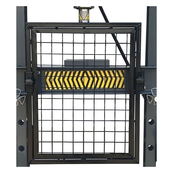 The safety cage can be adjusted and locked in place. The guard offers protection for the user or people nearby.