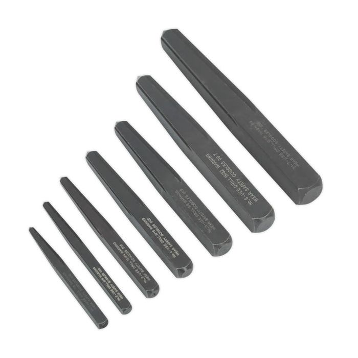 Contents: #1; 1/8"(3mm), #2; 3/16"(5mm), #3; 15/64"(6mm), #4; 5/16"(8mm), #5; 3/8"(9mm), #6; 15/32"(12mm), #7; 9/16"(14mm)