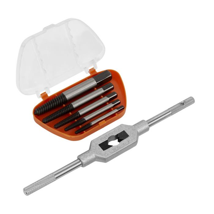 • Manufactured from high quality alloy steel. • Rapid acting helix aids screw removal. • Includes tap wrench. • Extractors supplied in storage case.