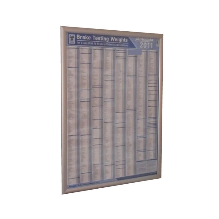 Keep your MOT data wall chart protected and professionally displayed with the SHS3305 Snap Frame. Designed for easy wall mounting, this durable aluminium frame features a sleek silver finish and snap-open edges for quick chart changes or updates. Ideal for garages, MOT stations, and workshops, the frame ensures your MOT information stays clean, visible, and compliant with DVSA display requirements. Suitable for standard Autodata MOT wall charts. Fixings included.
