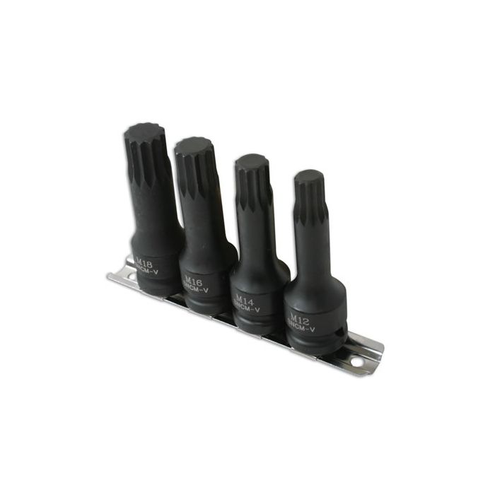 Tthe spline set is finished in impact quality chrome vanadium in sizes M12/M14/M16/M18 x 76mm long.