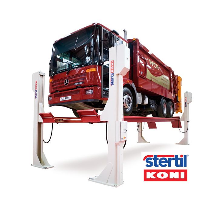 All movement of the 17.5 tonnes capacity ST4175 lift is controlled electronically. Precise operator control of the lift is achieved by using a well positioned control panel mounted on one of the lifting columns. The control panel also allows workshop engineers to programme a number of functions into the lift including vehicle width settings and a maximum lifting height.