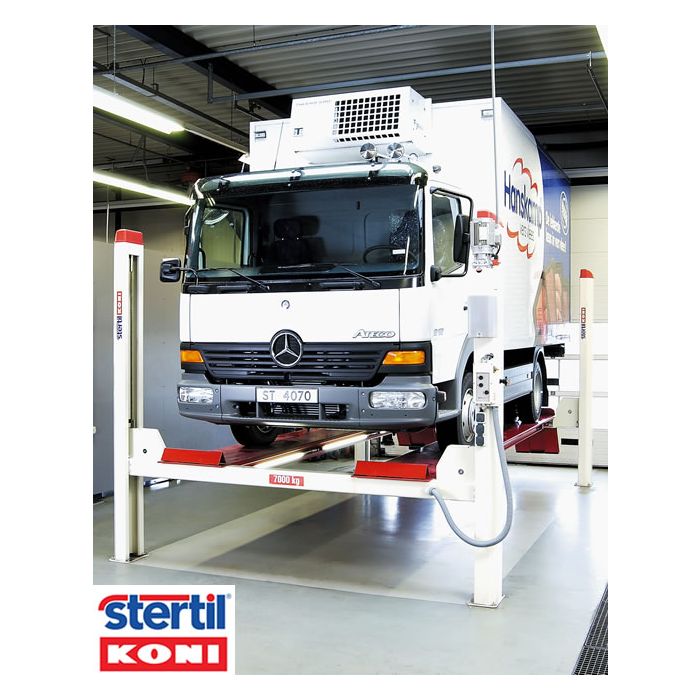 The Stertil-Koni compact 4-post vehicle ramps are very versatile for maintenance and servicing vans & commercial vehicles. The compact 4 post lifts are specifically developed for the new generation of long commercial vans and light freight trucks. Even in smaller garages or commercial vehicle workshops the mechanic has ample working space under the lift. The system is fitted with two hydraulic cylinders.