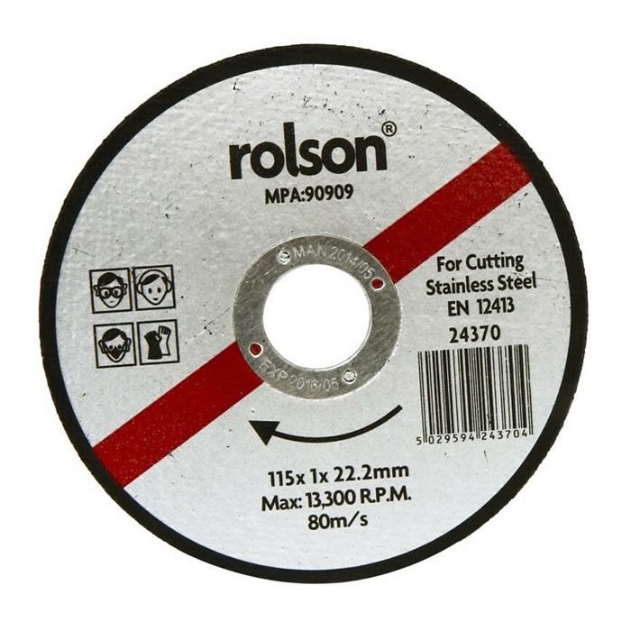 115mm Cutting Disc For Stainless Steel 115 x 1.0 x 22.2mm cutting disc, maximum 13300rpm. Suitable for most 115mm angle grinders