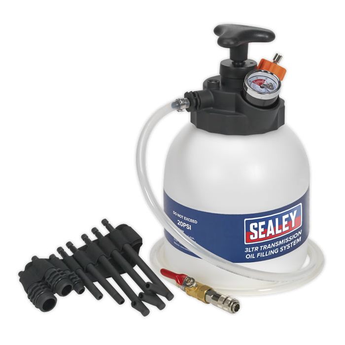 • Pump operated oil dispensing unit with a three litre capacity. • Supplied with five multipurpose and three vehicle specific automatic transmission fluid adaptors. • Features a fluid control and depressurising valve.